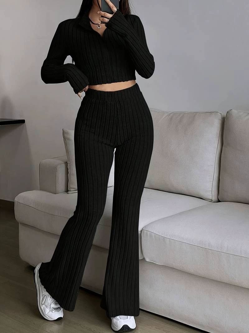 Be the first to review “Cross-border European and American new 2025 spring and summer fashion solid color striped long-sleeved turtleneck wide-leg high-waisted trousers suit” Cancel reply
